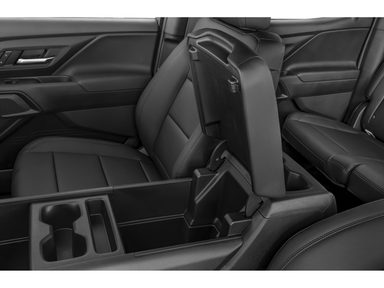 - Center console, floor-mounted 4 cup holders, USB port, Auxiliary and 120V Power Outlets
